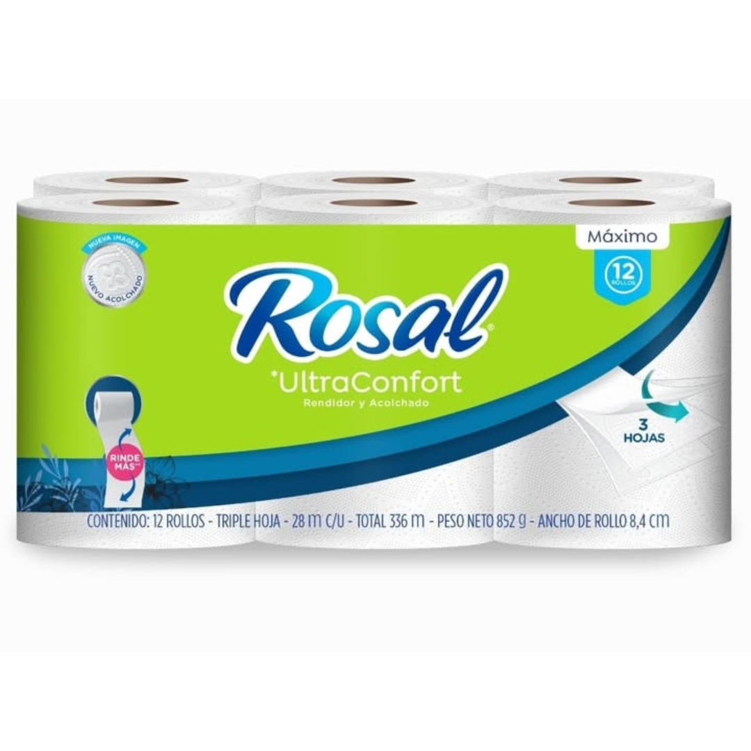 Papel Higienico Rosal Triple Hoja Ultraconfort 12*28m